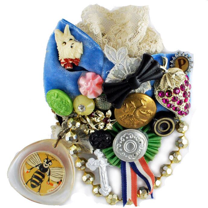 ヴィンテージボタン、ジュエリーをふんだんに使った