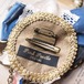 樹脂パーツなどを使って、フランス産ドット柄リボンに