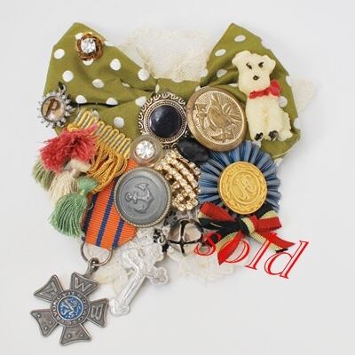 <ヴィンテージパーツコラージュブローチ L(1Dogs)>BR-174