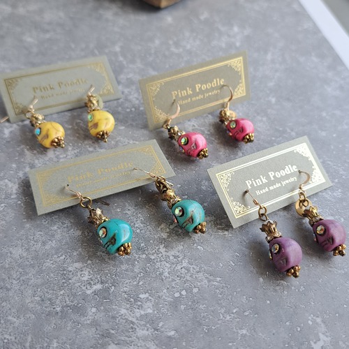 怖すぎない!キラリと光る眼のキュートなスカルちゃんイヤリングです。