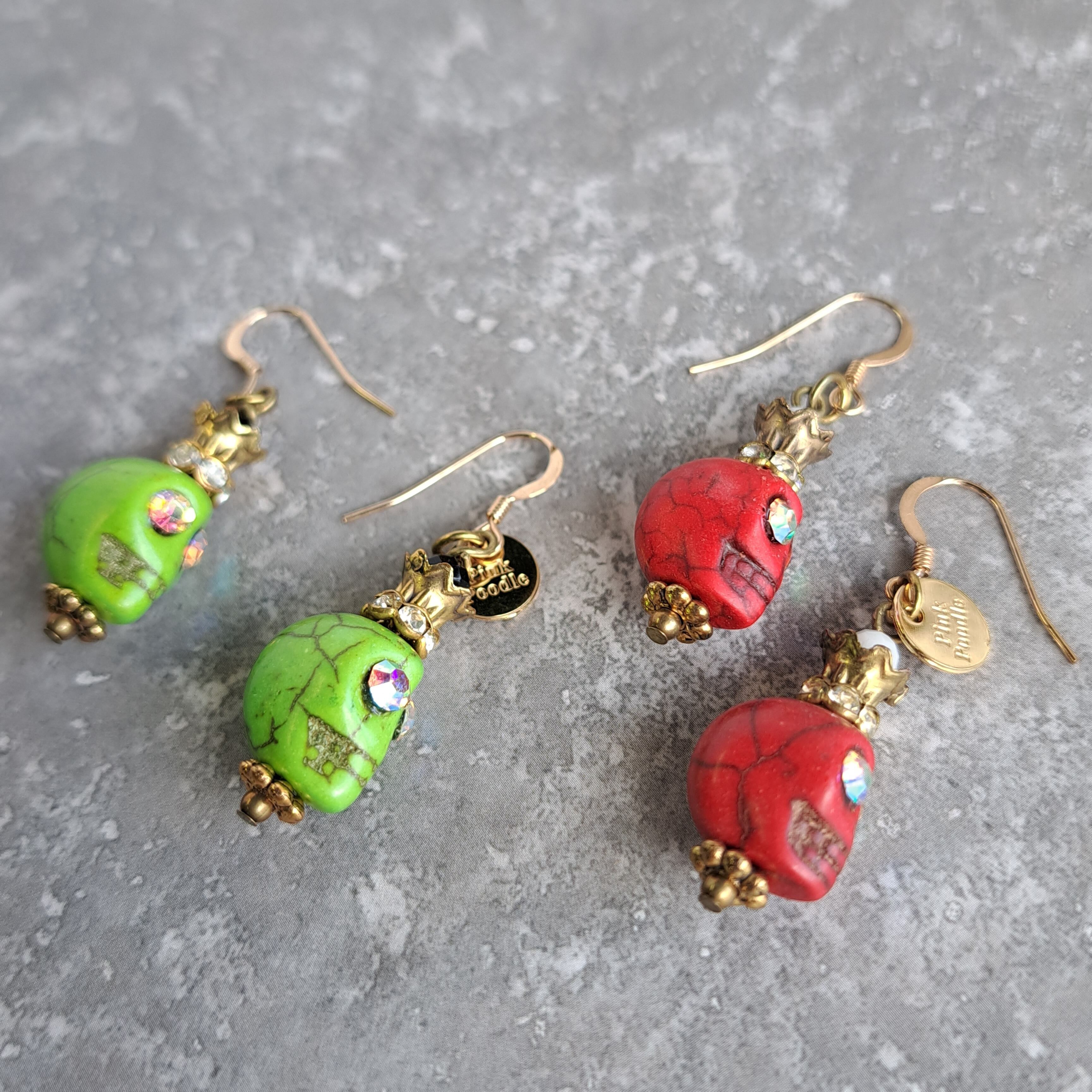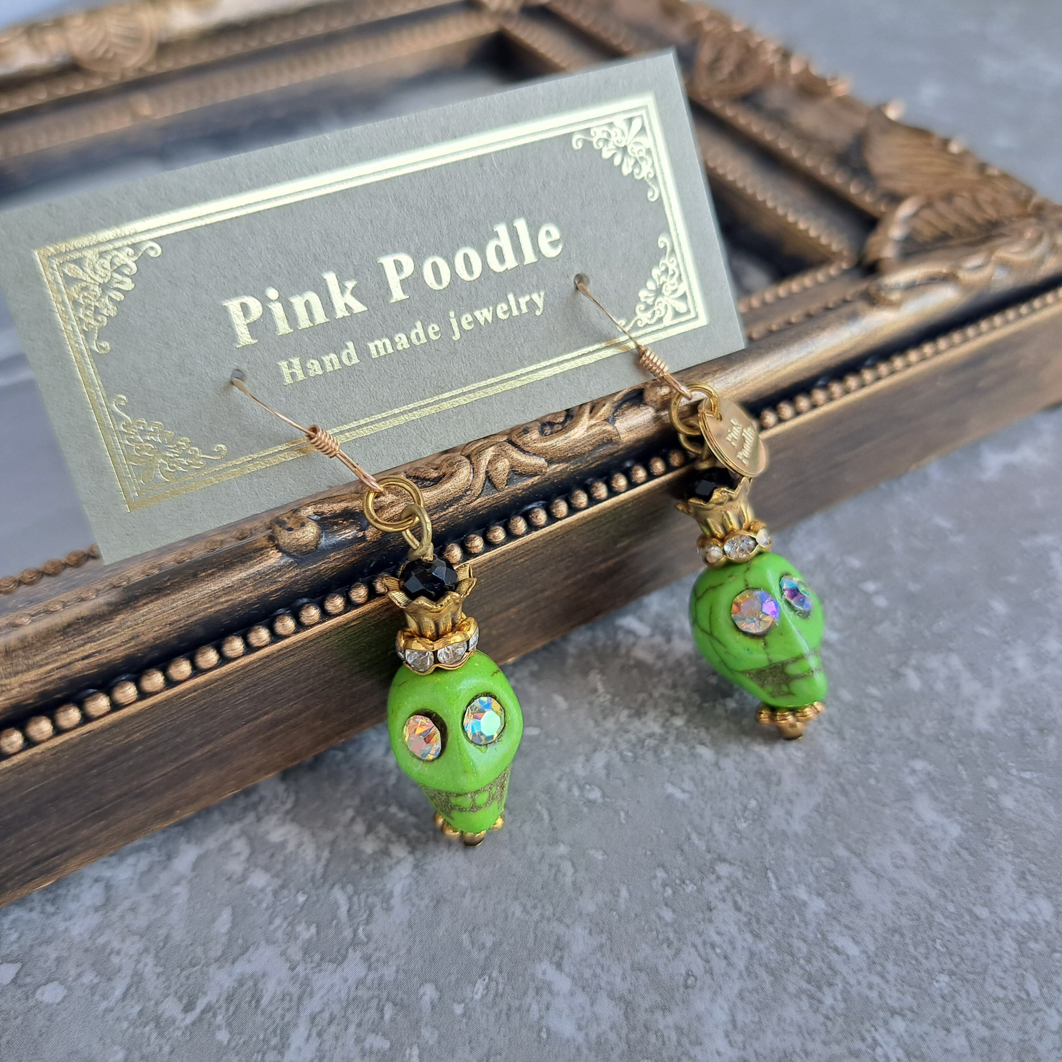 怖すぎない!キラリと光る眼のキュートなスカルちゃんイヤリングです。